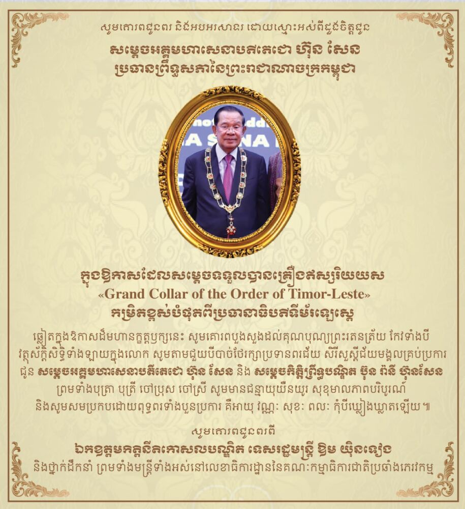 សូមគោរពជូនពរ និងអបអរសាទរ ដោយស្មោះអស់ពីដួងចិត្តជូនចំពោះសម្ដេចអគ្គមហាសេនាបតីតេជោ ហ៊ុន សែន ប្រធានព្រឹទ្ធសភានៃព្រះរាជាណាចក្រកម្ពុជា May 9, 2025 0