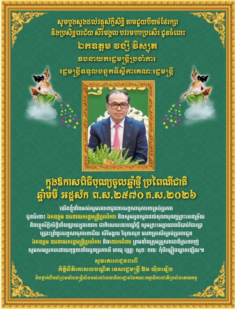 សូមបួងសួងដល់វត្ថុស័ក្តិសិទ្ធិ តាមជួយបីបាច់ថែរក្សា និងប្រសិទ្ធពរជ័យ សិរីមង្គល បវរមហាប្រសើរ ជូនចំពោះ ឯកឧត្តម វស្សី វិស្សុត ឧបនាយករដ្ឋមន្រ្តីប្រចាំការ រដ្ឋមន្រ្តីទទួលបន្ទុកទីស្តីការគណៈរដ្ឋមន្រ្តី ក្នុងឱកាសចូលឆ្នាំថ្មីប្រពៃណីជាតិ April 14, 2026 0