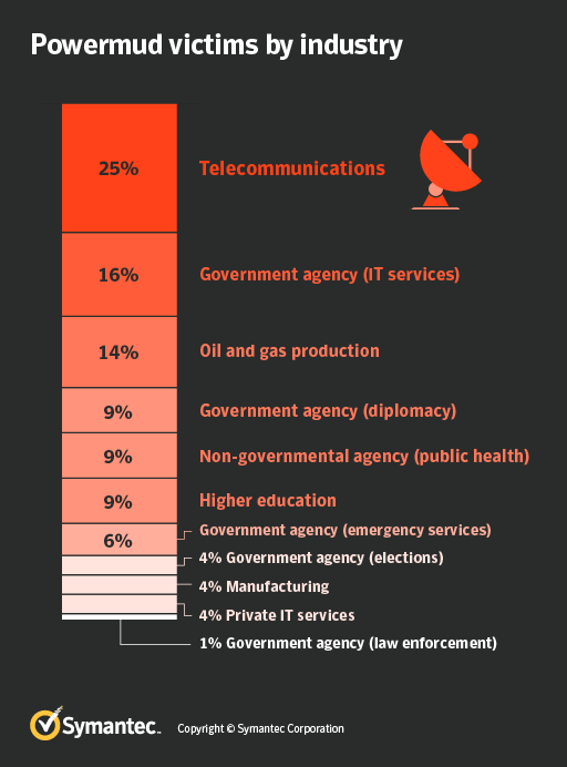 វាត្រូវគេដោយឈ្មោះថា MuddyWater ដែលជាសត្រូវដែលត្រូវកត់សម្គាល់ឃើញជាលើកដំបូងនៅក្នុងឆ្នាំ ២០១៧ ។ វាមានសកម្មភាពជាពិសេសធ្វើឱ្យមនុស្សចំនួន ១៣១ នាក់នៅក្នុងអង្គភាពចំនួន ៣០ នៅចន្លោះពីចុងខែកញ្ញានិងពាក់កណ្តាលខែវិច្ឆិកាឆ្នាំ ២០១៨ រងគ្រោះ។