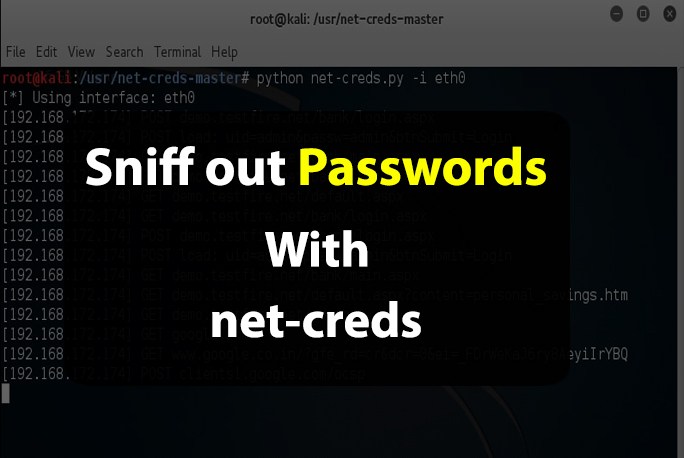 ក្នុងការបង្រៀន Kali លីនុចនេះ យើងបង្ហាញអ្នកពីរបៀបប្រើ Net Creds ដើម្បីចាប់ផ្ដើម ការវាយប្រហារ MITM ។ ពត៌មានពីអ៊ីនធឺណិតគឺជាស្គ្រីបដែលមានមូលដ្ឋានលើ python ដើម្បី sniff ចូលព័ត៌មានអត្តសញ្ញាណរបស់ជនរងគ្រោះដែលមកមើលគេហទំព័រ។