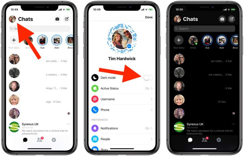 កន្លងទៅសម្រាប់អ្នកប្រើប្រាស់ Facebook Messenger ដែលចង់ទទួលបានមុខងារផ្ទៃកម្មវិធីងងឹត Dark Mode ចាំបាច់ត្រូវចូលទៅកាន់ប្រអប់សារណាមួយ ហើយធ្វើការផ្ញើចេញនូវរូប Emoji ចំណិតព្រះចន្ទដើម្បីបើកដំណើរការមុខងារនោះ។