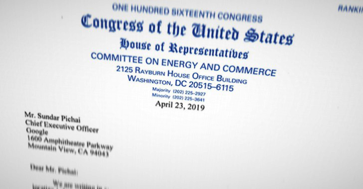 លិខិតនោះមានសំណួរលំអិតចំនួន ១០ ដែលបានលើកឡើងដោយបានស្នើសុំឱ្យ Google ឆ្លើយតបនៅថ្ងៃទី ៧ ខែឧសភាឆ្នាំ ២០១៩។ក្រៅពីនេះសមាជិកសភារួមទាំងប្រធានគណៈកម្មាធិការលោក Frank Pallone ដែលជាអ្នកប្រជាធិបតេយ្យមកពីរដ្ឋ New Jersey និងជាសមាជិកគណបក្សសាធារណរដ្ឋលោក Greg Walden ក៏បានស្នើសុំ Sundar Pichai ឱ្យធ្វើបទបង្ហាញអំពីប្រធានបទនេះដែរនៅត្រឹមថ្ងៃទី ១០ ខែឧសភា។