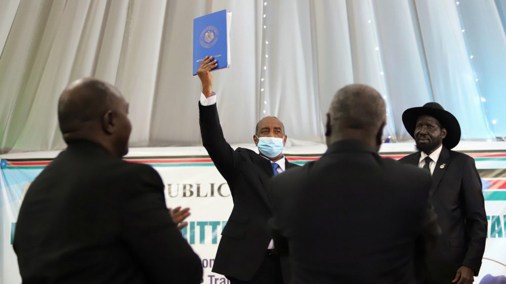 ពិធីចុះហត្ថលេខានៅរដ្ឋធានី Juba ក្នុងប្រទេសស៊ូដង់ខាងត្បូង ធ្វើឡើងនៅថ្ងៃចន្ទ ក្រោយពីមានការពិនិត្យលក្ខខណ្ឌនៃកិច្ចព្រមព្រៀងអស់រយៈពេលពីរថ្ងៃ។ ប្រទេសដែលជាម្ចាស់ផ្ទះបានជួយសម្របសម្រួលដល់កិច្ចចរចាសន្តិភាព។