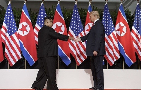 ការជួបគ្នាជាប្រវត្តិសាស្ត្ររវាងលោកប្រធានាធិបតីសហរដ្ឋអាមេរិក Donald Trump និងមេដឹកនាំកូរ៉េខាងជើងលោកគីមជុងអ៊ុនធ្វើឡើងក្នុងប្រទេសសិង្ហបុរីនៅថ្ងៃទី១២ ខែមិថុនា ឆ្នាំ២០១៨ ដែលបង្កើតបានឯកសាររួមគ្នាមួយដោយប្រទេសកូរ៉េខាងជើងប្តេជ្ញាចិត្តធ្វើកិច្ចខិតខំប្រឹងប្រែងឆ្ពោះទៅរកការកែទម្រង់អាវុធនុយក្លេអ៊ែរនៅប្រទេសកូរ៉េជាថ្នូរនឹងការធានាសន្តិសុខពីសហរដ្ឋអាមេរិក។ ក្រៅពីនេះប្រធានាធិបតីអាមេរិកសន្យាបញ្ឈប់សមយុទ្ធយោធារួមជាមួយកូរ៉េខាងត្បូងនៅជិតព្រំដែនកូរ៉េខាងជើង។