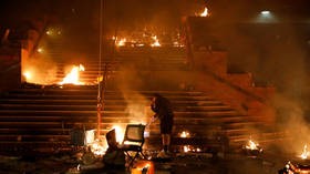 អគ្គិភ័យដ៏សន្ធឹកសន្ធាប់ឆាបឆេះនៅបរិវេណសកលវិទ្យាល័យពហុបច្ចេកទេសហុងកុងជាកន្លែងដែលក្រុមបាតុករប្រឆាំងរដ្ឋាភិបាលដុតសាំងលើប៉ូលីសកុបកម្ម និងពួកគេអំពាវនាវឲ្យពិភពលោកប្រជាធិបតេយ្យជួយសង្គ្រោះពួកគេ។ ទីធ្លាសាលាក្លាយជាសមរភូមិរវាងក្រុមអ្នកគ្រវែងដុំថ្ម ហើយប៉ូលីសបាញ់ឧស្ម័នបង្ហូរទឹកភ្នែក និងបាញ់ទឹក។ យោងតាមប្រភពឃ្លីបចេញពីកន្លែងកើតហេតុនៅព្រឹកថ្ងៃច័ន្ទបង្ហាញពីអណ្តាតភ្លើងឆេះឡើងក្បែរជណ្តើរទៅកាន់អាគារ។